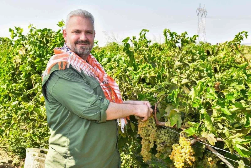 Üzüm rekoltesinin Menemen genelinde yaklaşık 24 bin 500 dekar alanda 60 bin ton olarak beklendiğine dikkat çeken Pehlivan, “Bu yıl 160 dekar bağımızın 80 dekarlık alanında sofralık ve kurutmalık olarak iki cins üzümümüz mevcut. Sofralık üzümde hasadımızı bitirdik. Kurutmalık üzümün de hasadını gerçekleştiriyoruz. Titizlikle yürüttüğümüz çalışmalarımızla daha sağlıklı ürün elde etmeyi hedefliyoruz. Diğer 80 dekar alanda ise birinci ürün olarak karakılçık buğdayı, ikinci ürün olarak mısır ekimi gerçekleştirdik. Karakılçıktan 14 ton buğday, 16 ton da saman elde ettik. Tüm çiftçilerimize bol ve bereketli bir hasat sezonu diliyorum” ifadelerini kullandı.