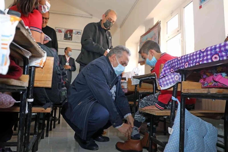 Başkan Yalçın daha sonra Çatakdere Mahallesi’ne geçti. Burada Türk Kızılayı Kayseri şubesi eski yöneticileri ve Talas İlçe Milli Eğitim yetkilileriyle ilkokula giden Başkan Yalçın, öğrencilerden büyük ilgi gördü. Öğrencilerin eğitim öğretimin yeniden başlaması heyecanına ortak olan Başkan Yalçın kendilerine kışlık bot ile çorap hediye etti.