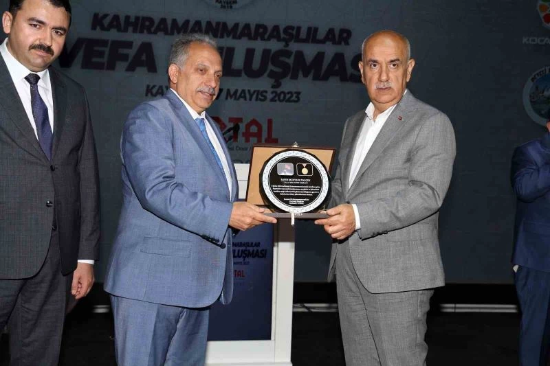 Teşekkür plaketini Tarım ve Orman Bakanı Vahit Kirişçi’nin elinden alan Başkan Yalçın, ‘Vefa Buluşması’ ile Kayseri’de yaşayan Kahramanmaraşlılarla bir araya gelmekten duyduğu memnuniyeti belirterek, “İlk günden itibaren yaraların sarılması adına yanında olduğumuz depremzede kardeşlerimize sağladığımız destekler için tarafıma takdim edilen plaketten dolayı Sayın Bakanıma ve kıymetli Kahramanmaraşlılara teşekkür ediyorum. Rabbim bir daha böyle acılar yaşatmasın. Çok uzun yıllardır bu şehirde birlikte yaşadığımız Kahramanmaraşlı kardeşlerimizle olan birlik ve beraberlimizi de daim eylesin” dedi.