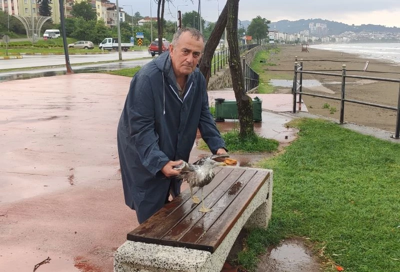 Nuriye Mahallesi’nde aşırı yağışlardan dolayı sahil kısmında bulunan ve su hatlarını kontrol ettiği sırada kumsalda yere doğru havlayan sokak köpeğini gören Ünye Belediye Başkan Yardımcısı Orhan Gürel, yerde yatan martıyı fark etti. Köpeği uzaklaştırdıktan sonra bitkin düşen martıyı önce kurulayan Gürel, daha sonra üç gün boyunca martının bakımını yaptı.