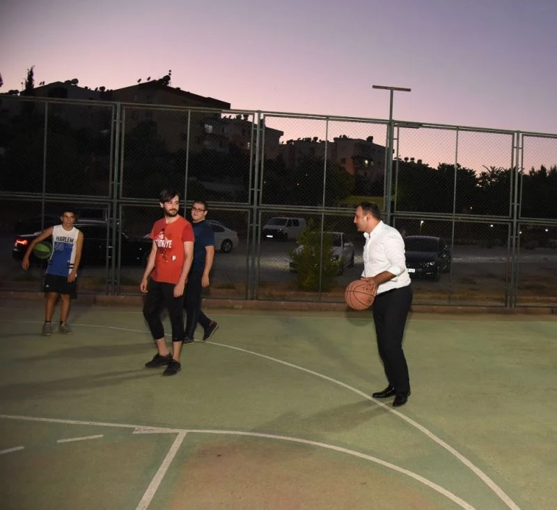 Mersin’in merkez ilçe Toroslar Belediye Başkanı Atsız Afşın Yılmaz, ilçede basketbol oynayan gençlere sürpriz yaptı. Ziyaretler sırasında gençlerin yanına da giden Yılmaz, onlarla basketbol oynadı.