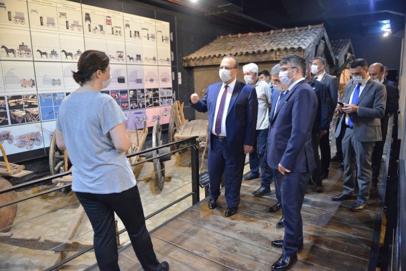 Yıldırım Belediyesi’ndeki makamında, Bursa Valisi Yakup Canbolat ile Yıldırım Kaymakamı Adem Yazıcı’yı konuk eden Yıldırım Belediye Başkanı Oktay Yılmaz, ilçede yapılan hizmetler ve yürütülen çalışmalar hakkında bilgiler verdi. Başkan Yılmaz, daha sonra Vali Canbolat ve Kaymakam Yazıcı ile birlikte ilçede Osmanlı Dönemi’nin önemli alimlerinden Bursalı fıkıh alimi Mollayegan’ın adını taşıyan ve Fatih Sultan Mehmet’in öğrenim gördüğü Mollayegan Medresesi’nde Yıldırım Belediyesi tarafından yapılan Çocuk Aktivite Merkezi ile Yıldırım Bayezid Külliyesi’ndeki restorasyon çalışmalarını yerinde inceledi. Ardından Karamazak bölgesindeki Niyazi Mısri tarafından bulunup, 1700’lü yıllarda Yedekçi Ali Efendi tarafından inşa edilen ve zamanla tahrip olarak günümüze ulaşamayan türbe ve mescitten kalan Aşık Yunus, Yunus Emre ve aşıkların önderi Abdürrezzak’a ait kabirleri ziyaret eden Vali Canbolat, Başkan Yılmaz’dan binalar arasında kalan türbenin gün yüzüne çıkarılması ile ilgili yürütülen çalışmalar hakkında bilgi aldı. Öte yandan Sultan Abdülmecid, Sultan Abdülaziz ve Sultan 5. Mehmed Reşad gibi 3 Osmanlı padişahının yanı sıra Gazi Mustafa Kemal’i de ağırlayan Hünkar Köşkü’nün ardından Umurbey Mahallesi’ndeki Tofaş Bursa Anadolu Arabaları Müzesi’ni ziyaret eden heyet, nostaljik arabalar ve tarihi hakkında görevlilerden bilgi aldı.