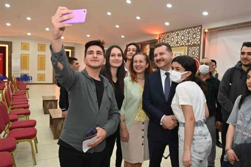 Başarı ve başarısızlık hakkında gençlere tecrübelerini aktaran Başkan Yılmaz, “Biz sizlerin yaşındayken ne düşünüyorduk ve şu anda ne hale geldik. Arkadaşlarımızdan kimler başarılı oldu kimler başarılı olabilecekken olmadı. ’Başarı, zenginlik nedir?’ diye sorduklarında herkes kendince çok farklı cevaplar verebilir. Zenginlik önce sağlıktır, etrafındaki insanlarla beraber yaşamaktır, maddi boyutuna gelince de ihtiyaçlarını kendi istediğine göre karşılayabiliyorsan zenginsin demektir. Koyduğunuz çizgiyi geçebiliyorsanız işte o başarıdır. Başkalarına göre başarısız olabilirsiniz, ama kendi koyduğunuz çizgiyi geçebiliyorsanız başarılısınızdır demektir. Hedefiniz olması gerekiyor, hedefiniz yoksa başarı diye bir şeyden bahsetmek mümkün değildir” açıklamasında bulundu.