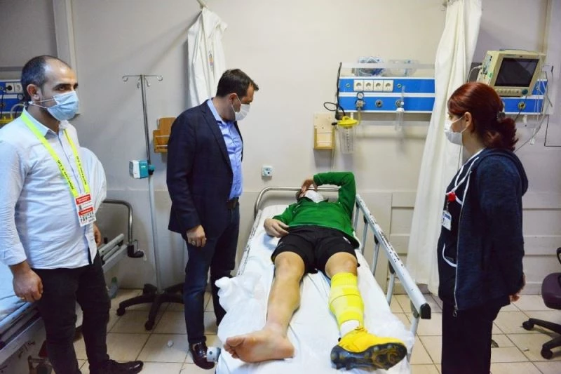 Sakatlanan sporcuyu hastanede ziyaret etti