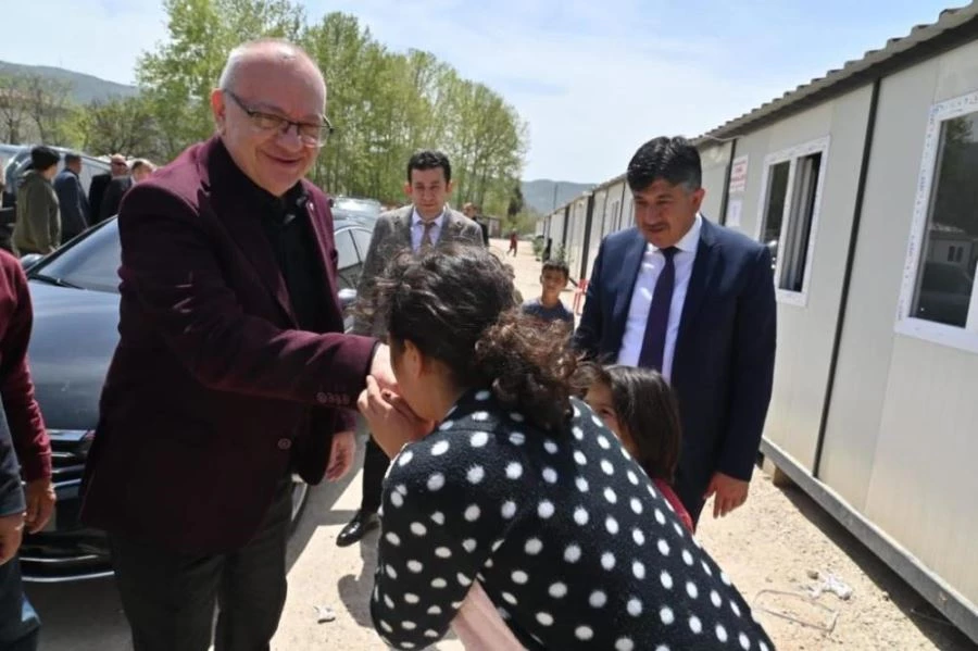 Manisa Büyükşehir Belediye Başkanı Cengiz Ergün, eşi Şeyda Ergün ile birlikte Bahçe ilçesine bağlı Yeni Mahalle’de kurulan konteyner kentte, afetzede vatandaşlarla bir araya geldi. Başkan Ergün ve eşi Şeyda Ergün, çocuklara çeşitli hediyeler takdim ederken, onlarla yakından ilgilendi. Başkan Ergün, vatandaşlarla da tek tek selamlaşarak, geçmiş olsun dileklerini iletti.