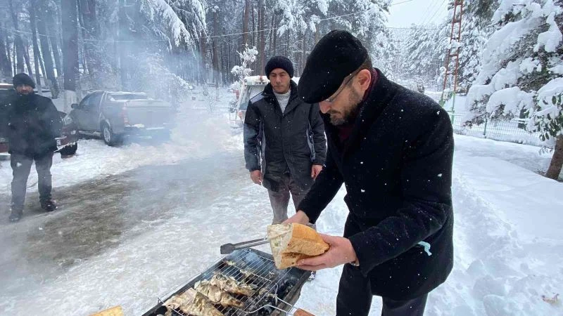 Başkandan karla mücadele ekibine mangalda balık ikramı