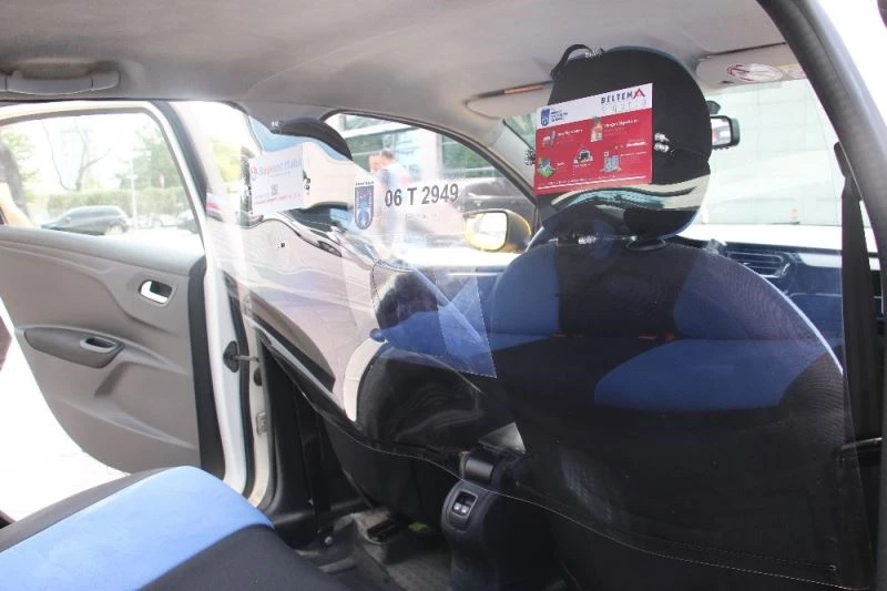 Başkentli taksi şoförleri ile yolcuların virüse maruz riskini azaltmak amacı ile gerçekleştirilen uygulamada ön koltuklar ile arka koltukları birbirinden ayıran şeffaf bir panel bulunacak, yolcu, taksi ücretini panelde bulunan bir bölmeden şoföre ödeyecek.