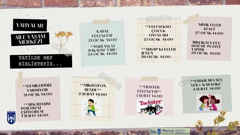 Başkent’in dört bir yanında bulunan AYM’lerde yarıyıl tatiline giren çocuklar için sinema ve tiyatro gösterilerinden bilgi yarışmalarına, sportif faaliyetlerden gezilere kadar birçok aktivite düzenlenecek.
