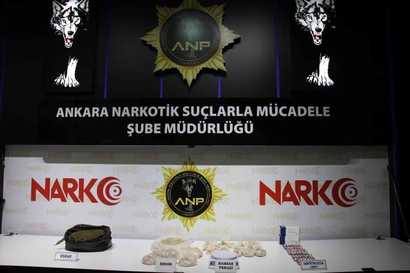 Ankara Emniyet Müdürlüğü Narkotik Suçlarla Mücadele Müdürlüğü ekipleri, Ankara genelinde uyuşturucu madde ticareti yaptığı tespit edilen 9 şüpheli gözaltına alındı. Altındağ ilçesinde 11 ve Çankaya ilçesinde 1 olmak üzere 12 ayrı noktada eş zamanlı gerçekleşen aramalarda, 2 kilo 453 gram eroin, 920 gram esrar, 100 adet sentetik ecza ve bir adet hassas terazi ele geçirildi.
