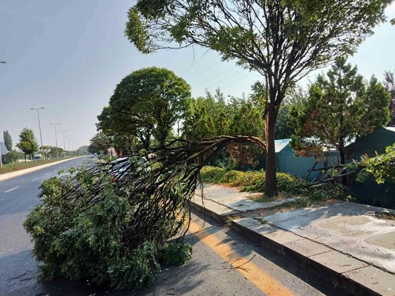 Ankara’da öğle saatlerinde etkili olan fırtına ve sağanak bir ağacı yerinden söktü. Gövde kısmından kopan ağacın yola devrilmesi sebebiyle trafikte zor anlar yaşandı.