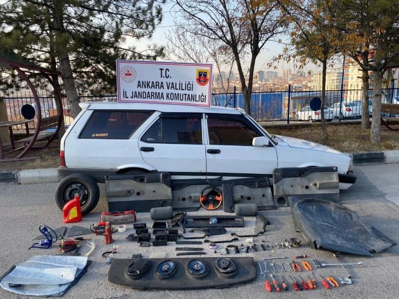 Ankara İl Jandarma Komutanlığı’na bağlı ekipleri, Altındağ ilçesi Karacaören Mahallesi sanayi sitesinde farklı iş yerlerinde bulunan otomobillerden hırsızlık yapıldığı ihbarı üzerine çalışma başlattı. Jandarma ekiplerinin yaptıkları çalışmalarda, incelenen kamera görüntülerinden yola çıkılarak hırsızlık olayını M.E. ve R.B. isimli şahısların bir araçla gerçekleştirdiği tespit edildi. Yapılan teknik takip sonucunda M.E. ve R.B. isimli şüpheliler hırsızlık olayında kullandıkları araç ve hırsızlık malzemeleri ile Altındağ Karapürçek Mahallesinde yakalandı.