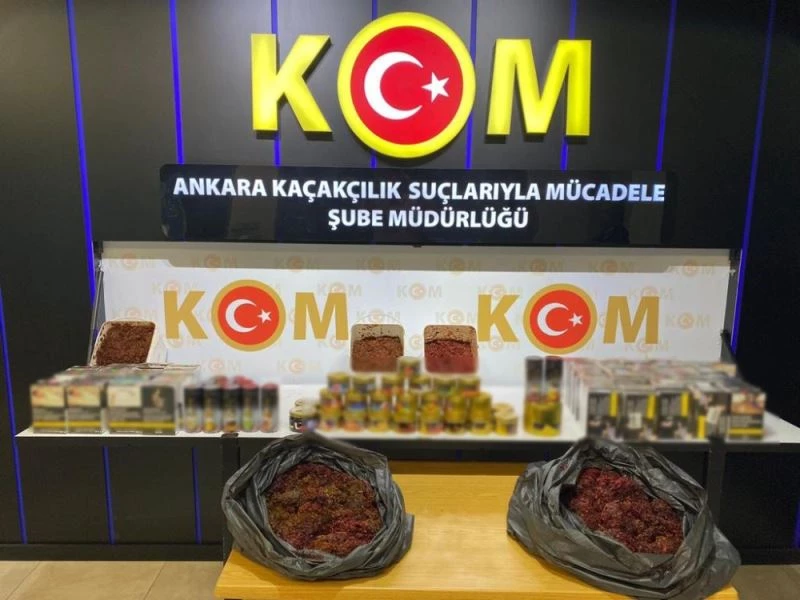 Alınan bilgiye göre, Ankara Emniyet Müdürlüğü Kaçakçılık Suçlarıyla Mücadele Şube Müdürlüğüne bağlı ekiplerin Mamak ve Etimesgut ilçelerinde yaptığı çalışmalarda 5607 SKM suçundan 3 kişi yakalandı. Zanlılarla birlikte 206 paket kaçak sigara, 770 paket pipo tütünü, 362 adet elektronik sigara likiti, 33 paket kaçak nargile tütünü, 32 adet elektronik sigara cihazı, 60 adet elektronik sigara yedek parçası, bin 960 paket doldurulmuş sigara, 570 adet boş tütün ambalajı, bin 45 paket doldurulmuş makaron, 1 adet sigara sarma makinası, 1 adet hava kompresörü, 3 bin 800 adet bandrolsüz boş makaron, 7 kilogram kıyılmış tütün, bin 135 adet makaron ve tütün paketlerinden sökülmüş TPDK bandrolü ele geçirildi.