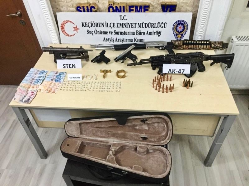Ankara İl Emniyet Müdürlüğünden yapılan açıklamada, dün saat 21.00 sıralarında uyuşturucu madde ticareti yaptığı tespit edilen şahıslara yönelik gerçekleştirilen operasyonda S.A., H.A. ve N.E. isimli şüphelilerin gözaltına alındığı belirtildi. Operasyonda 107 adet taş kokain, 3 adet toz kokain, 4 adet ekstasy ve 1 adet AK-47 Kalaşnikof tüfek, 1 adet pompalı tüfek, 1 adet otomatik tabanca, 2 adet kuru sıkı tabanca ve bu silahlara ait şarjör ve mermilerin ele geçirildiği ifade edildi.