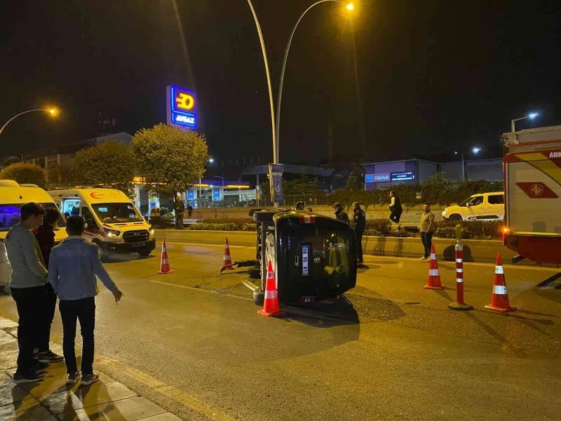 Başkent’te kontrolden çıkan otomobil refüje çarparak yan yattı: 1 yaralı