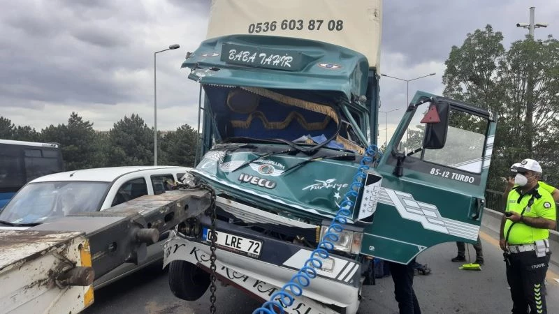 Başkentte nakliye kamyonun hafriyat kamyonuna çarpması sonucu 3 kişi yaralandı.