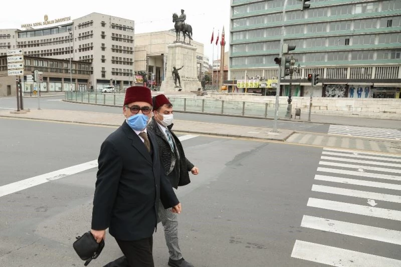 Ankara’nın tarihi mekanlarından olan 1. Meclis Binası’nda çekilen dönem dizisi oyuncuları, kısıtlama kapsamı dışında kaldıkları için boş caddeler onların oldu. Boş caddelerde dönem kıyafetleri ile gezen oyuncular, başkentin ünlü meydanlarından olan Ulus Meydanı’nda adeta bir nostalji havası estirdi.