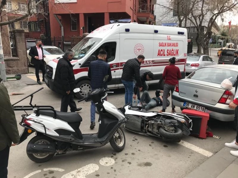 Ankara’nın Çankaya ilçesinde motosikletin bir otomobile çarptığı kazada kurye yaralandı.