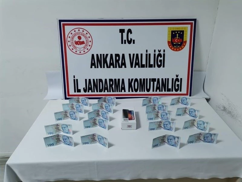 Alınan bilgiye göre, K.K. isimli şahıs tarafından cep telefonu alış verişi sonunda kendisine sahte para verilerek dolandırıldığı ihbarında bulunmasının ardından jandarma ekipleri çalışma başlattı. Ankara İl Jandarma Komutanlığınca ihbar üzerine suç ve suçluluğun önlenmesine yönelik sürdürülen çalışmalar kapsamında; Ankara’nın Etimesgut ilçesinde araştırmalar başladı. Jandarma ekiplerinin yaptığı çalışmada, 19 adet 100 TL’lik banknotun aynı seri numarasında ve sahte olduğu tespit edildi. Şüpheli İ.Ö. olduğu belirlenerek Bağlıca’da yakalandı. Zanlı, Ankara Batı Cumhuriyet Başsavcılığı talimatı ile gözaltına alınarak hakkında adli işlemlere başlandı.