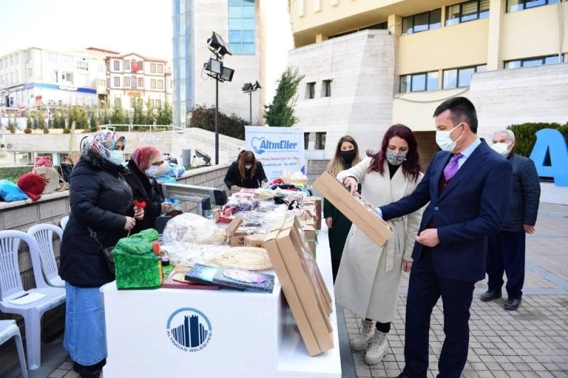 Başkan Balcı daha sonra, Altındağlı kadınların emeklerini kazanca dönüştürdüğü Altın Eller Kadın Kooperatifi’nin, Altındağ Belediyesi önündeki standı ziyaret etti. Kadınların el emeği ürünleriyle yakından ilgilenen Başkan Balcı, hem hayırlı satışlar diledi, hem de kadınların 8 Mart Dünya Kadınlar Günü’nü kutladı. Balcı daha sonra, Altındağlı kadınlara 8 Mart sürprizi yaptı. Kadın Eğitim ve Kültür Merkezlerini ziyaret eden Balcı, buradaki kadınlara da karanfil armağan etti. Altındağ’ın, kadınların desteği sayesinde değişmeye devam ettiğini söyleyen Başkan Balcı "Kadınlara yönelik projelerimize her zaman öncelik verdik. Bundan sonra da bu düşüncelerle çalışmaya devam edeceğiz” dedi.