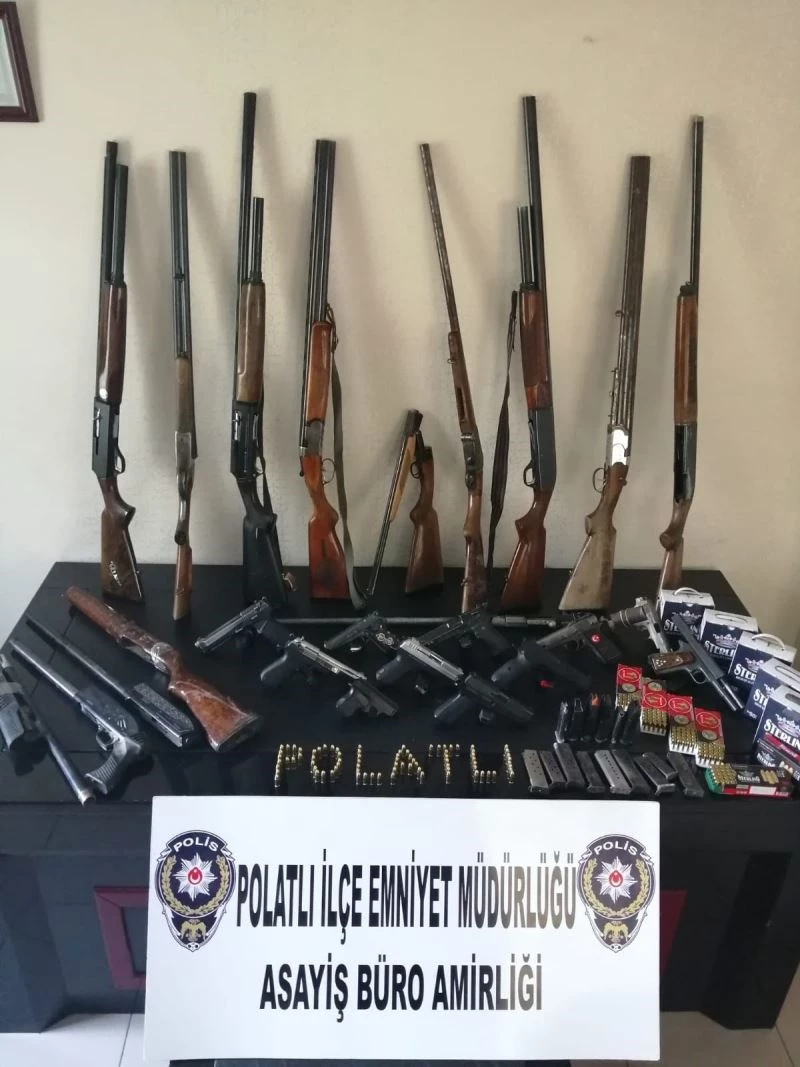 Ankara Polatlı İlçe Emniyet Müdürlüğü’ne bağlı Asayiş Büro Amirliğince, silah ticareti yaptığı değerlendirilen şahıslara yönelik bir operasyon gerçekleştirildi. Edinilen bilgiye göre, 33 ayrı adrese eş zamanlı düzenlenen operasyonlarda 25 kişi gözaltına alınırken, 11 adet tabanca, 3 adet ses tabancası, 7 adet tüfek, 31 adet şarjör, bin 330 adet değişik çaplarda tabanca fişeği, çok sayıda tabanca ve tüfek parçası, silah tamir ve bakım aracı ele geçirildiği bildirildi. Şüpheliler hakkında gerekli adli işlem başlatıldığı öğrenildi.