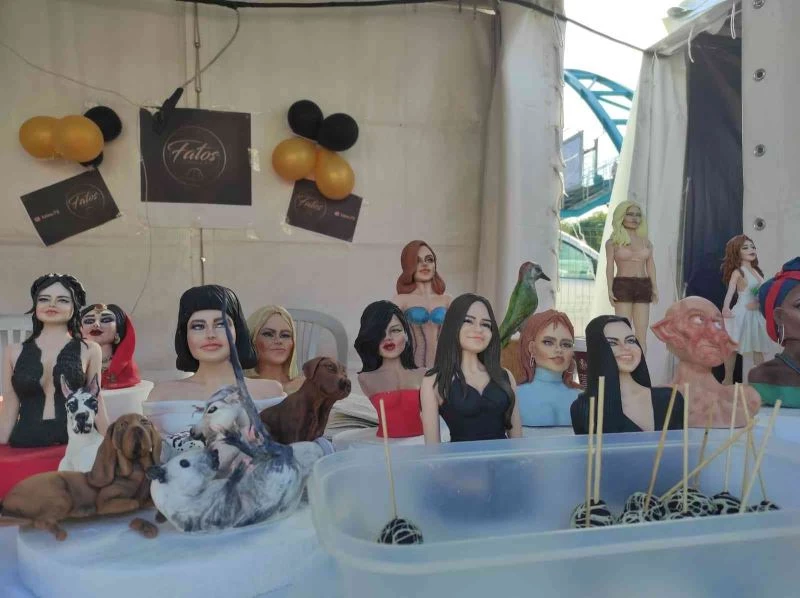 Yarışmaların yanı sıra stantlarda sergilenen ürünler de vatandaşların ilgi odağı oldu. Şeker hamurundan heykel yapan Fatma Balçık, “Ben aslında özgür çalışmayı çok seviyorum. Güzel olan her şeyi yapmayı çok seviyorum ama şöyle bir şey var bazen sıra dışı çalışmaları yapmak ayrı bir keyif veriyor bana, ruhumda olan bir şey sanırım pasta ve figürü bir araya getirmek. Tamamen hepsi yenilebilir, kullandığım makyaj ürünleri bile gıda boyasıdır. Rahatlıkla herkesin hem yiyebileceği hem de saklayabileceği bir ürün ve yıllarca kırılmadan kalabilir. Bazı figürlerimi üç günde de bitirebiliyorum üç saatte de, figürün zorluk derecesine bağlı ama kişiye özel çalıştığımda genelde üç gün sürüyor. Hayvan figürleri de yapıyorum aslında farklı hayvanları da seviyorum ama insan portesini yapmaktan keyif alıyorum çünkü insan çalışmayı seviyorum. Yaptığı çalışmalardan çok güzel tepkiler aldık. Bu festivalde çok çok ilgilendiler sağ olsunlar çünkü farklı geliyor herkese. Şeker hamurunu bu kadar heykel gibi gördüklerinde şaşırıyorlar. ’Bu yenilebilir mi?’ diye soruyorlar ve bende keyifle anlatıyorum onlara her şeyi." dedi.