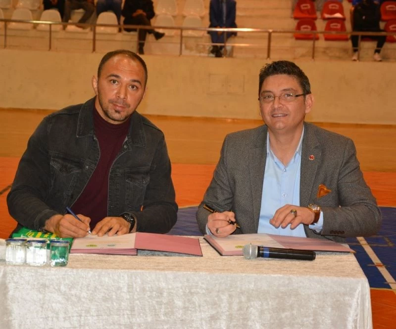 Konuşmaların ardından Korkuteli Belediye Başkanı Ömer Niyazi İşlek ve Başpehlivan Ali Gürbüz birlikte protokolü imzaladılar.