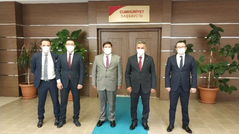 Valiler kararnamesi ile mülkiye başmüfettişliği görevine atanan Samsun Valisi Osman Kaymak, bugün Samsun Cumhuriyet Başsavcısı Mehmet Sabri Kılıç’a veda ziyaretinde bulundu. Vali Kaymak’ı Samsun Adliye Sarayı önünde beraberinde Başsavcı Vekilleri Hasan Kıdıl, Adem Aldemir ve Selçuk Cebeci ile birlikte karşılayan Başsavcı Mehmet Sabri Kılıç, Kaymak’a çiçek takdim etti. Başsavcı Kılıç, Vali Kaymak’a yeni görevinde başarılar diledi.