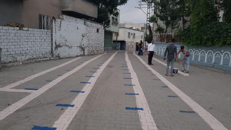 Şırnak’ın Silopi ilçesine bağlı Başverimli beldesinin en büyük meydanında cuma namazı için sosyal mesafe hazırlığı yapıldı.