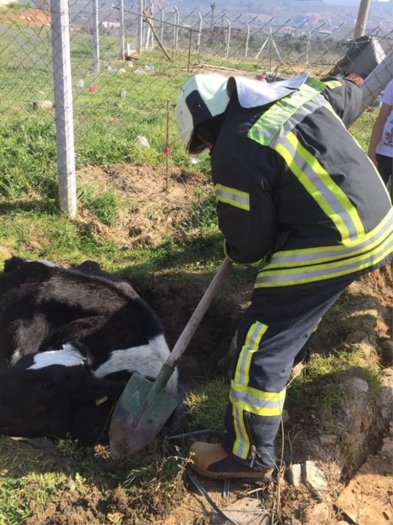 Olay Manisa’nın Turgutlu ilçesine bağlı Çepnibektaş Mahallesi’nde meydana geldi. Edinilen bilgiye göre Pınar Çeri’ye ait bir inek, otlatıldığı sırada bataklığa saplandı. Sahibinin bütün uğraşları sonucu kurtarılamayan hayvan için Manisa Büyükşehir Belediyesi İtfaiye Dairesi Başkanlığından yardım istendi. Olay yerine gelen ekipler önce kürek yardımıyla hayvanın saplandığı yerden çıkarılması için çevresinde genişletme çalışması yapıldı. Ardından araçta bulunan çekici halat yardımıyla bataklığa saplanan hayvan kurtarıldı. Sağlık durumunun iyi olduğu öğrenilen büyükbaşhayvan, sahibi Pınar Çeri’ye teslim edildi.