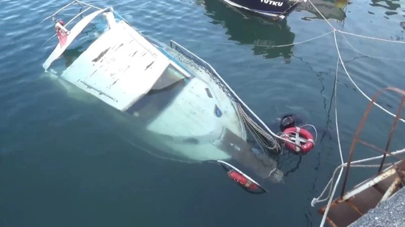 Silivri’de limana bağlı olan tekne, rüzgarında etkisiyle battı. Batan tekne dalgıç tarafından kurtarıldı.