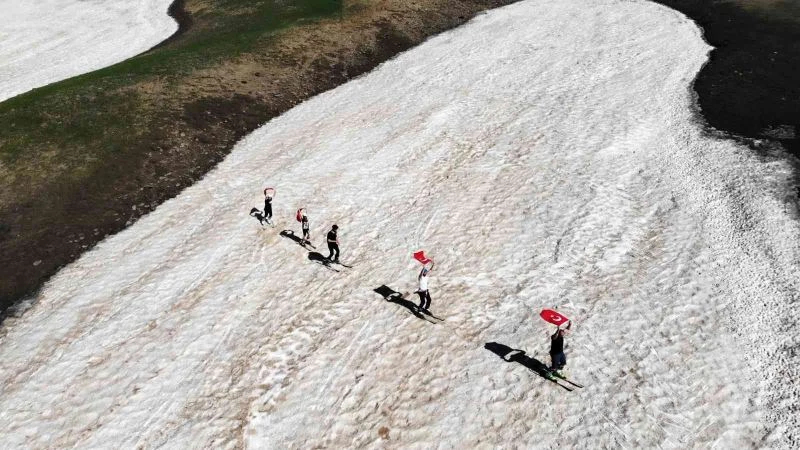 Türkiye’nin sahil bölgelerinde insanlar denizde yüzüp kumsallarda güneşlenirken, başarılı operasyonlar sonucu terörden temizlenen Muş’un dağlarında ise kayakseverler temmuz ayına rağmen kayak yapmanın mutluluğunu yaşıyor.