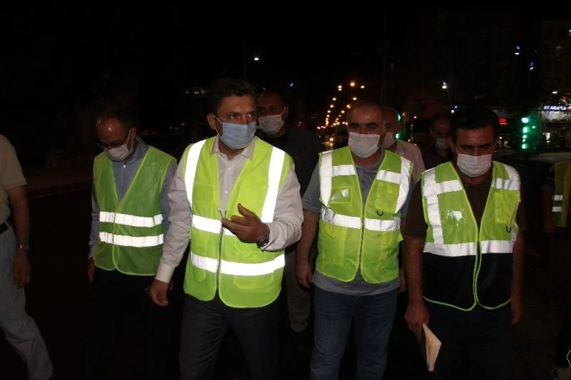 Batman Valisi ve Belediye Başkan Vekili Hulusi Şahin, gece saat 23.30 civarında yapılan ana arter asfalt serim çalışmalarını yerinde inceledi ve çevre esnafını ziyaret etti.