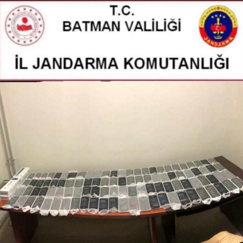 Batman’ın Hasankeyf ilçesinde kaçakçılara yönelik çalışma yürüten İlçe Jandarma Komutanlığı ekipleri, durumundan şüphelendikleri bir aracı durdurdu. Jandarma ekiplerince araçta yapılan aramada piyasa değeri 400 bin lira olan 100 adet gümrük kaçağı cep telefonu ele geçirildi.