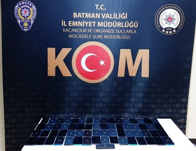Batman Emniyet Müdürlüğü KOM Şube Müdürlüğü ekiplerince, kaçakçılık faaliyetlerini önlemeye yönelik yapılan çalışmalar kapsamında Hasankeyf uygulama noktasında durdurulan araçta yapılan aramada, 65 adet gümrük kaçağı cep telefonu ele geçirildi. Olayda gözaltına alınan bir kişinin emniyetteki işlemlerinin devam ettiği öğrenildi.