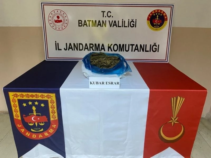 Batman İl Jandarma Komutanlığı KOM Şube Müdürlüğü ekiplerince uyuşturucu ile mücadele kapsamında tespit edilen 3 şüpheliye ait 3 adreste eş zamanlı olarak arama yapıldı. Aramalarda 700 gram toz esrar maddesi ve 1 kilo 100 gram kubar esrar maddesi ele geçirildi. Şahıslar hakkında işlem başlatıldı.