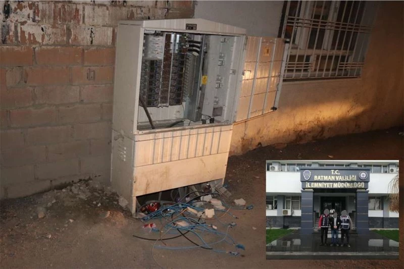 Edinilen bilgilere göre, Batman Kültür Mahallesinde bulunan GSM şirketine ait baz istasyonunda meydana gelen kablo hırsızlığı olayı ile ilgili S.Ş. isimli şahıs yakalandı. Batman İl Emniyet Müdürlüğündeki işlemlerinin ardından mahkemeye sevk edilen şahsın tutuklanarak cezaevine teslim edildiği belirtildi.