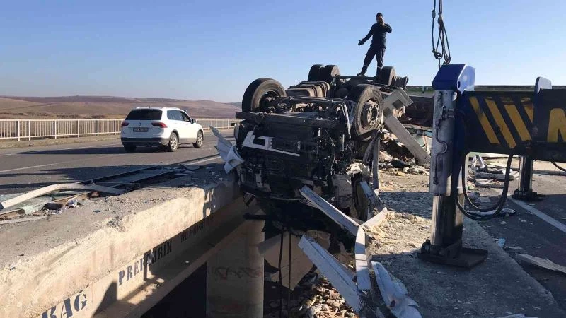 Batman-Diyarbakır karayolunda sürücüsünün direksiyon hakimiyetini kaybettiği tır, kontrolden çıkarak köprüde asılı kaldı. Kazada 1’i ağır 2 kişi yaralandı.