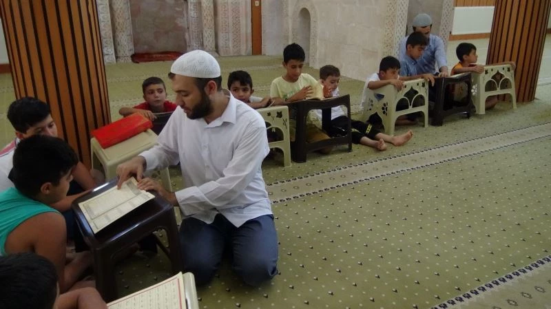 Yaz Kur’an kurslarına devam eden çocuklar, hem Kur’an öğreniyor hem de yaz sıcaklarında havuzda yüzerek serinleyip eğleniyor. Çocukların camiye alışması için sosyal etkinlikler haricinde çikolata top kek ve dondurma ikramı da yapılıyor.