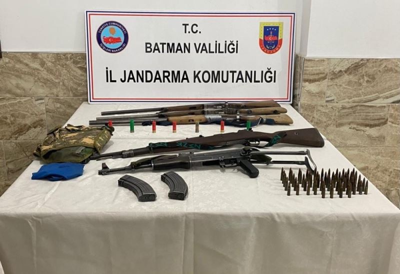 Batman İl Jandarma Komutanlığı, Sason ilçesinde bir adreste silah bulunduğu bilgisi üzerine harekete geçti. Jandarma ekipleri tarafından adreste yapılan aramalarda 1 AK-47 Kaleşnikof piyade tüfeği, 1 Mauser marka uzun namlulu piyade tüfeği, 3 av tüfeği, 2 şarjör, 59 fişek ve 7 av tüfeği fişeği ele geçirildi. Konu ile ilgili 1 kişinin gözaltına alındığı belirtildi.