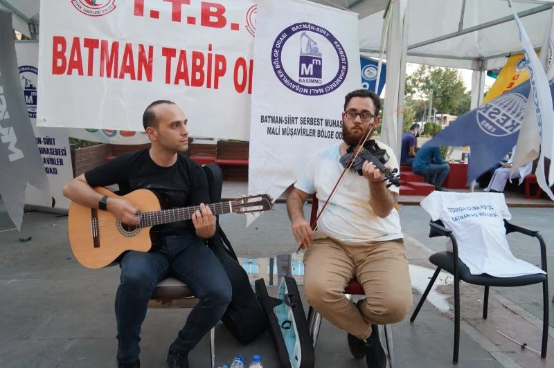Dünyada ve ülkemizde hala etkisini devam eden korona virüs salgını can almaya devam ediyor. Batman’da kentin beli noktalarında kurulan aşı çadırları insanları müzikle aşıya çağırıyorlar. Batman Aşı İnisiyatifi Grubunun yaptığı çağrılarla halk aşı olmaya ikna ediliyor. Batman’da artan vakalar nedeniyle hastanelerin yoğun bakım ünitelerinde yoğunluk devam ederken İl Sağlık Müdürlüğü tarafından kentin işlek caddesi olan Diyarbakır Caddesi’nde oluşturulan aşılama noktalarında Batman Aşı İnisiyatifi grubu vatandaşlar aşı olma çağrısında bulunmak için gitar ve keman eşliğinde müzik dinletisi yapıyor. Turgut Özal Bulvarında kurulan aşı çadırında konuşan müzisyen, "Batman aşı inisiyatifi bileşenlerinden eczacı odası başkanımız tarafından davet edildik. İnsanları müzikle aşıya teşvik ediyoruz” dedi.