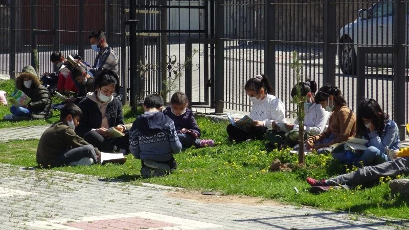 Batman’da öğretmen ve öğrenciler parkta kitap okudu