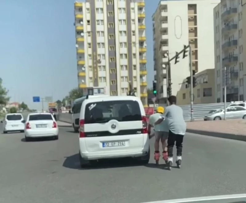 Batman’da bir grup patenli genç, kentin en işlek caddelerinde trafiğin yoğun olduğu saatlerde tehlikeye aldırış etmeden otomobillerin arkasına tutunup yolculuk yapmaya devam ediyor. Kentin farklı noktalarında cep telefonu kamaralarına yansıyan görüntülerde iki patentli genç bir aracın arkasına tutunarak tehlikeli yolculuklarını sürdürdü. Bir başka görüntüde de bir yük kamyonetinin arkasına tutunan patentli gençler ölüme davetiye çıkardı.