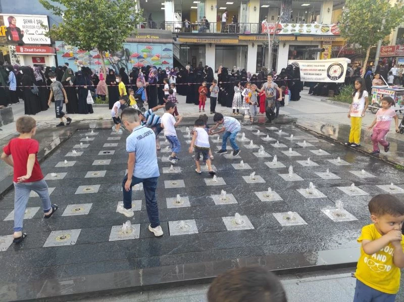 Batman’da sıcaktan bunalan çocuklar, fıskiyelerin altında serinlemeye çalıştı