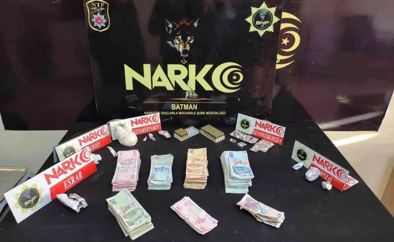 Batman İl Emniyet Müdürlüğünden yapılan açıklamada uyuşturucu ticareti yapan torbacılara yönelik düzenlenen operasyonda gözaltına alınan 13 kişiden 7’sinin tutuklandığı belirtildi. Açıklamada “Batman Emniyet Müdürlüğü Narkotik Suçlarla Mücadele Şube Müdürlüğümüzce, torbacılık yöntemiyle uyuşturucu madde ticareti yaparak, toplum sağlığına ve toplumsal huzura zarar veren ve bu yolla haksız kazanç elde eden şahıslara yönelik 08 Ekim 2021 günü yapılan operasyon neticesinde, 90,68 gram metamfetamin maddesi, 3,73 gram eroin maddesi, 285,82 gram esrar maddesi, 26,98 gram sentetik kannobinoid maddesi, 455 adet lyrıca hap, 7 adet suboxene hap, 70 adet 9x19 tabanca fişeği, 33 bin 505 TL suçtan elde edilen para, 3 adet muşta ele geçirilmiş, 13 şüpheli şahıs yakalanarak gözaltına alınmıştır. İl Emniyet Müdürlüğümüzdeki işlemlerinin ardından, adli makamlara sevk edilen şüpheli şahıslardan 6’sı tutuksuz yargılanmak üzere serbest bırakılmış, 7 şahıs ise tutuklanarak ceza evine teslim edilmiştir” denildi.