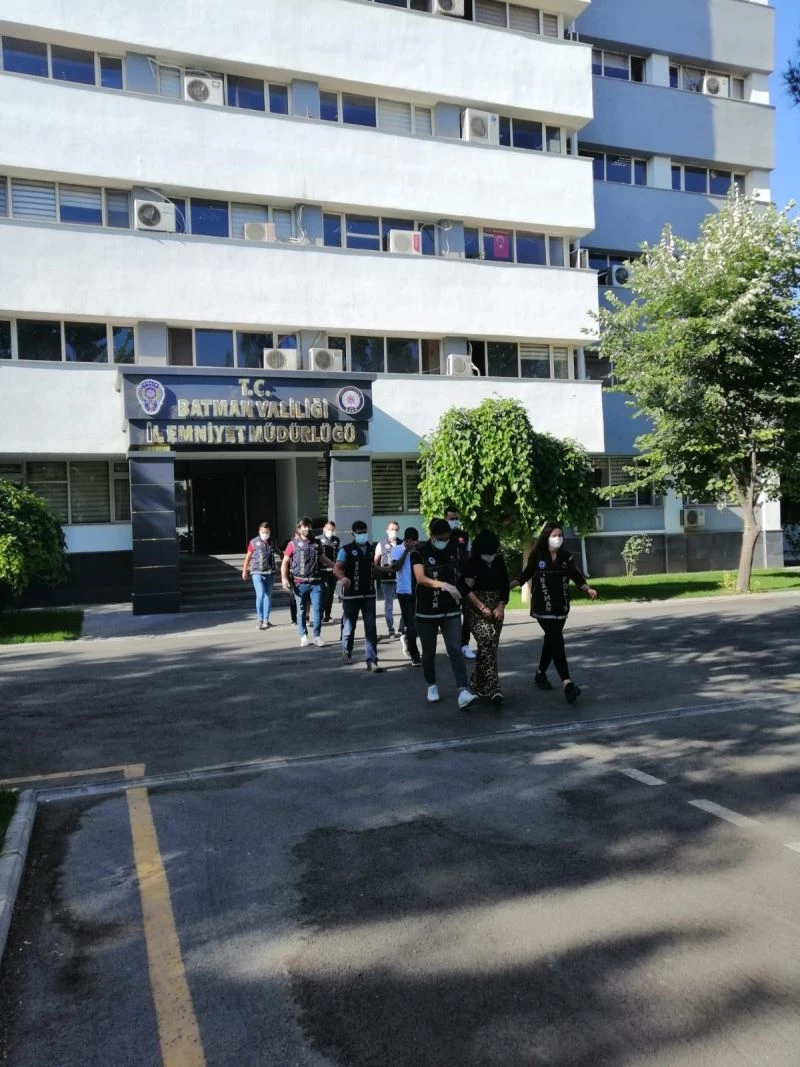 Batman Emniyet Müdürlüğünden yapılan açıklamada, Narkotik Suçlarla Mücadele Şube Müdürlüğümü ekiplerince Seyitler Mahallesi’nde torbacılık yöntemi ile uyuşturucu madde ticareti yapan şahıslara yönelik düzenlenen operasyon neticesinde 16 şüpheli yakalanarak gözaltına alındığı belirtildi. Adli makamlara sevk edilen şüphelilerden 6’sının tutuksuz yargılanmak üzere adli kontrol kararı ile serbest kaldığı 10 şüphelinin de tutuklanarak cezaevine gönderildiği kaydedildi.