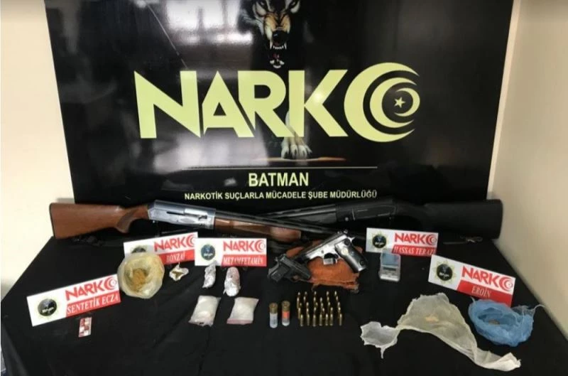 Batman Emniyet Müdürlüğü Narkotik Suçlarla Mücadele Şube Müdürlüğü ekiplerince torbacılık yöntemi ile uyuşturucu madde ticareti yaparak toplum sağlığına ve toplumsal huzura zarar veren şahıslara yönelik başlatılan planlı çalışmalar aralıksız sürüyor. Uyuşturucu madde ticaretine karıştıkları tespit edilen şüpheli şahısların yakalanması ve suç unsurlarının ele geçirilmesi amacıyla Batman’da 5 ayrı adrese eşzamanlı operasyon düzenlendi. Yapılan operasyonlarda, 140 gram metamfetamin maddesi, 37,63 gram sentetik kannabinoid maddesi, 31,75 gram eroin maddesi, 5 hap, 3 ruhsatsız tabanca, 35 tabanca fişeği, 2 ruhsatsız av tüfeği, 2 kartuş, 1 hassas terazi ele geçirildi. Konu ile ilgili gözaltına alınan 5 şüpheli şahıstan 1’nin suçu kapsamında kesinleşmiş 15 yıl hapis cezası olduğu ortaya çıktı.