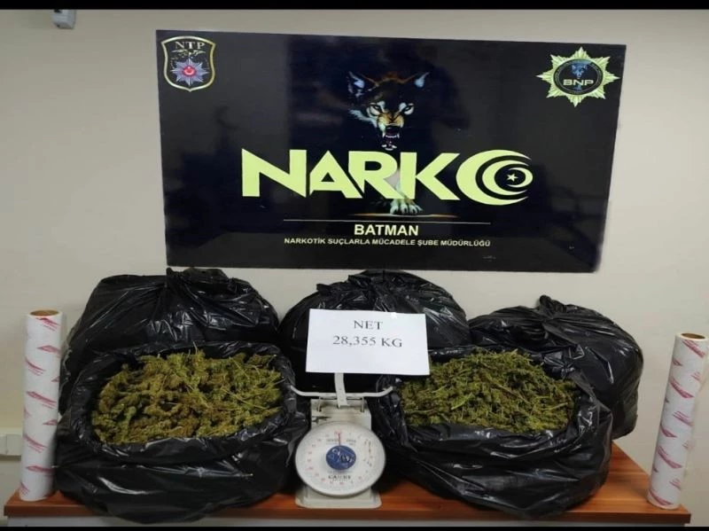 Batman İl Emniyet Müdürlüğü ekiplerince, uyuşturucu satıcılarına yönelik iki farklı adreste düzenlenen operasyonda 28 kilo 355 gramı hibrit esrar olarak bilinen skunk olmak üzere toplamda 67 kilo 205 gram esrar ele geçirdi.