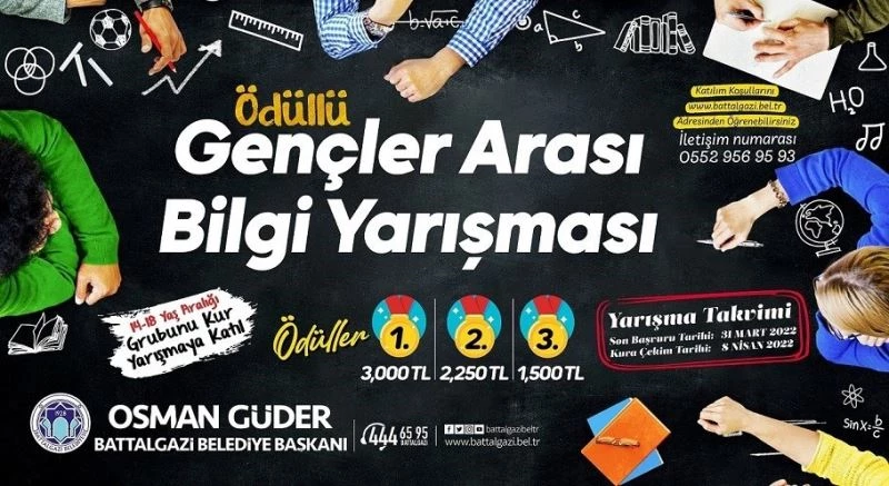 Malatya Battalgazi Belediyesi tarafından gençler arasında bilgi paylaşımını yaygınlaştırmak, gençlere yarışma kültürünü kazandırmak amacıyla düzenlenecek olan 3 bin TL ödüllü bilgi yarışmasına başvurular devam ediyor.