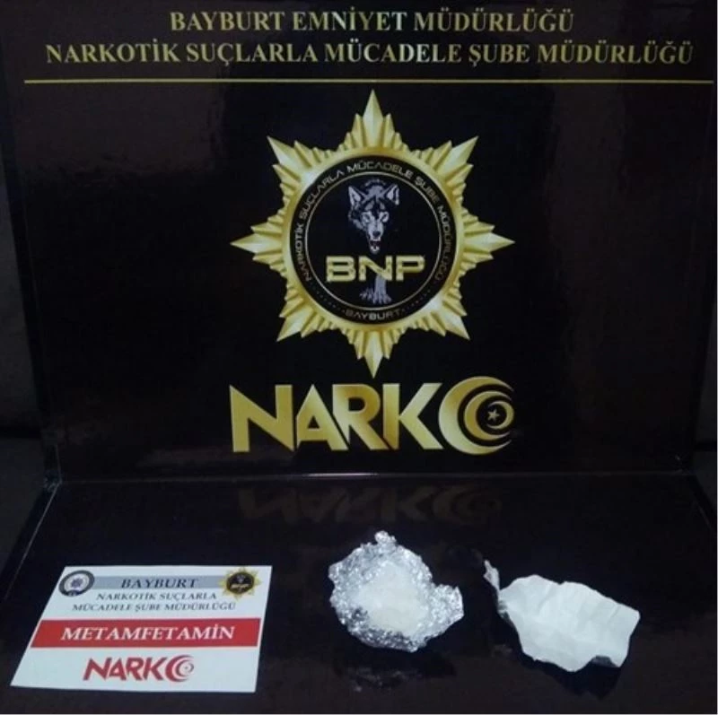 Bayburt Emniyet Müdürlüğü Narkotik Suçlarla Mücadele Şube Müdürlüğü ekiplerince, uyuşturucu ve uyarıcı madde suçlarına yönelik yapılan çalışmalar kapsamında; Ü.Ö., F.T., M.B. isimli şahısların uyuşturucu madde nakledebileceği değerlendirilmesi üzerine şahısların kullandığı araç kent girişinde durduruldu. Yapılan aramada bir miktar metamfetamin ve bir miktar esrar maddesi ele geçirildi.