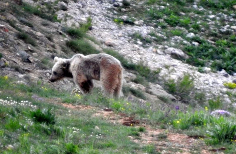 Erzincan Munzur Dağı yaylasında da boz ayı görüntülendi. Zaman zaman yerleşim yerlerine yakın araziye inen boz ayı, yiyecek bulmak için arayışını sürdürdü.